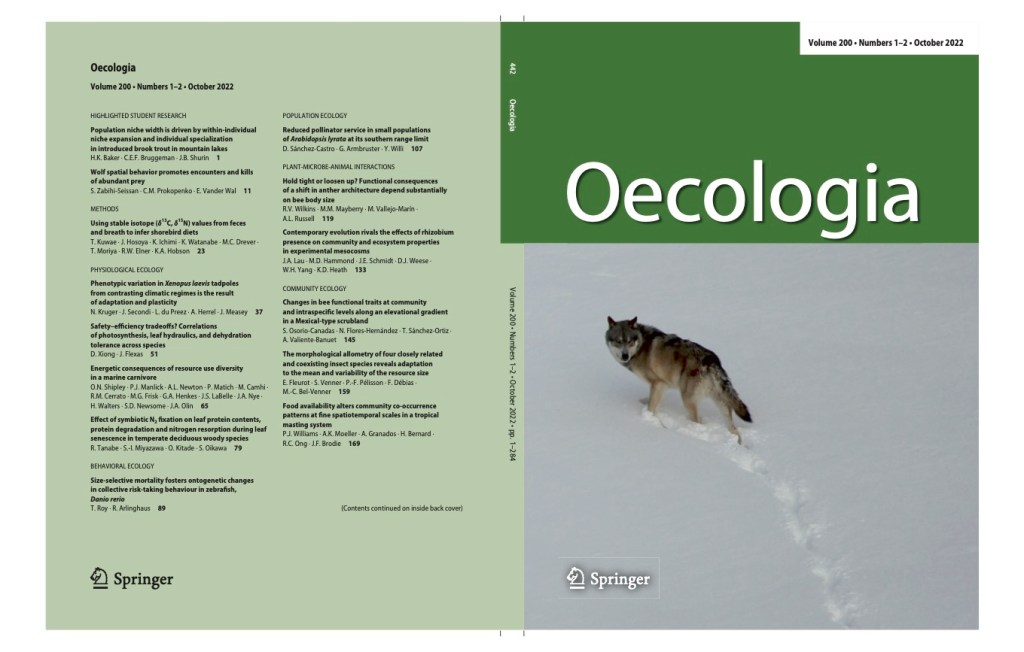 Zabihi-Seissan, S., Prokopenko, C., and Vander Wal, E. 2022. Wolf spatial behavior promotes encounters and kills of abundant prey. Oecologia – Highlighted Student Research